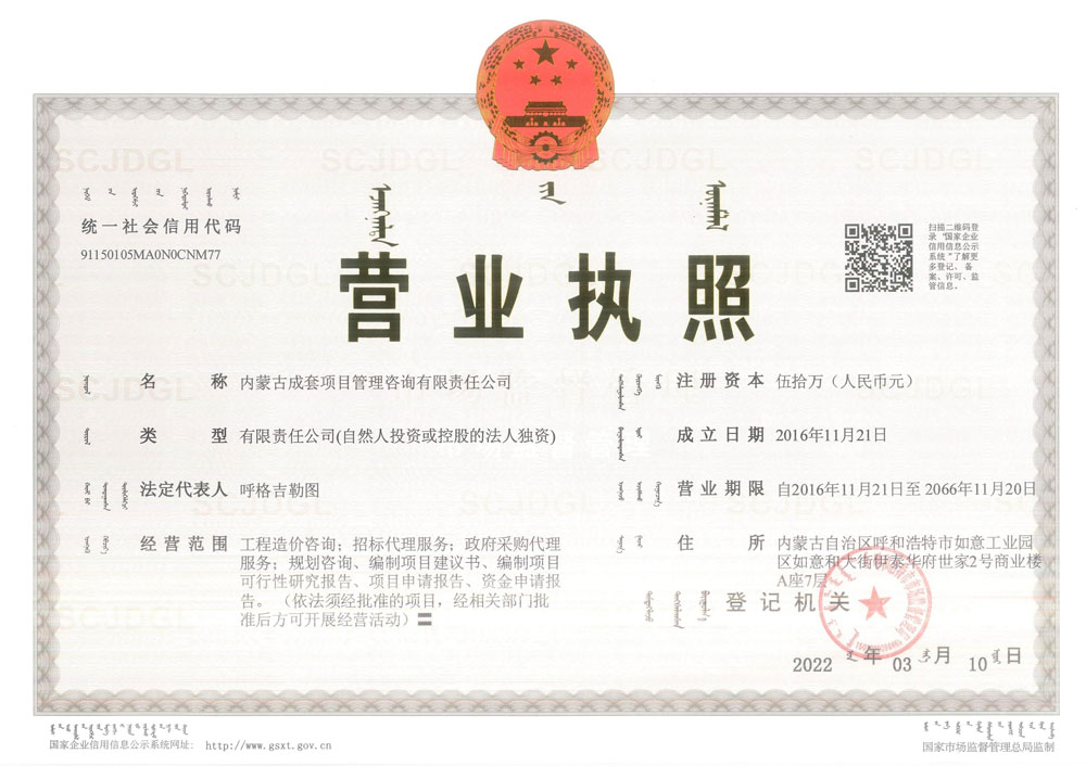 內蒙古成套項目管理咨詢有限責任公司營業(yè)執(zhí)照